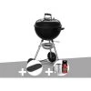 Barbecue Original Kettle 57 cm noir de la marque Weber.Reconnaissable par tous, grâce Ă son look et son design mythique et original, le barbecue Ă charbon Weber est aussi un condensĂ© de technologie qui vous assure une utilisation facile et pratique tout en garantissant les saveurs originales du barbecue. Le barbecue Ă charbon Original Kettle est d’une hauteur de 107 cm pour cuisiner Ă l’aise et Ă hauteur de la grille de cuisson. Pour le nettoyage, le système One-Touch pour l’Ă©vacuation des cendres. Le nettoyage devient facile et rapide.Pratique, il possède un thermomètre intĂ©grĂ© pour gĂ©rer la tempĂ©rature de la cuisson, vous trouverez Ă©galement un clapet d’aĂ©ration en aluminium pour gĂ©rer la circulation de l’air. En rĂ©sumĂ© :