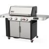 Un barbecue aux performances supérieures avec 4 brûleurs, une zone de brunissage et un brûleur latéral. Technologie Weber Connect intégrée aux guides de cuisson étape par étape. Design attrayant et finitions haut de gamme. Grandes étagères latérales, armoire fermée et compartiment latéral pour ranger les accessoires. Eclairage de la zone de cuisson et des manettes.