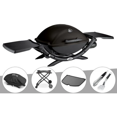 Barbecue à Gaz Weber Q 2200 + Housse + Chariot + Plancha + Kit Ustensile – Noir