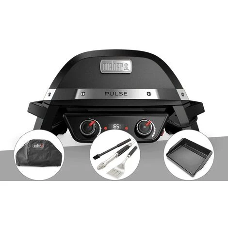 Barbecue électrique Weber Pulse 2000 + Housse + Kit Ustensiles 3 Pièces Better + Plancha