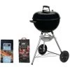 Pack WEBER Barbecue Ă charbon Original Kettle E-5710 57cm Noir – un sac de charbon – un mĂ©lange de copeaux Whisky, Ce pack vous permettra de profiter de votre barbecue en faisant de bonne volaille ou morceaux de porc grillĂ© cuit au charbon de bois.