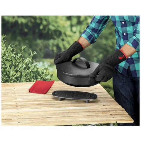 - Confectionnés dans un matériau souple et résistant à la chaleur permettant une manipulation aisée des outils de barbecue et du couvercle du barbecue