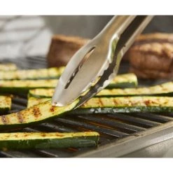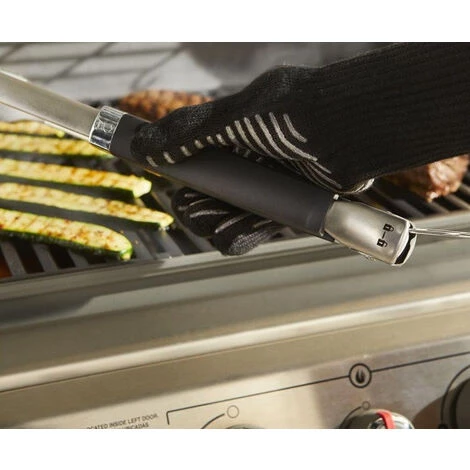 La pince de barbecue Precision facilite la manipulation des aliments sur le barbecue. La construction robuste en acier inoxydable et la poignée à revêtement doux offrent un contrôle complet et une prise en main confortable. La forme aplatie du bord avant vous permet de glisser la pince facilement sous les aliments lorsque vous soulevez et retournez des aliments délicats comme les légumes et le poisson, tandis que la poignée à revêtement doux permet de déplacer sans effort un lourd carré de côtes. Le mécanisme de verrouillage mains libres ferme la pince pour une utilisation rapide et facile et permet un rangement compact.