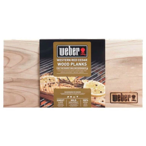 Planches Ă fumer WEBER – cèdre – 2pcs – 15x30cm, idĂ©ales pour donner un goĂ»t fumĂ© Ă votre poisson prĂ©fĂ©rĂ©. Cette planche vous permettra de donner une note fumĂ©e Ă vos aliments ou camembert.